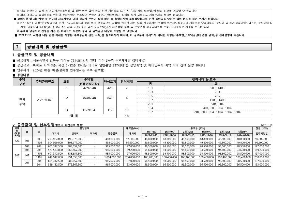 - 공급규모 : 18세대 (42B타입-2세대, 84B타입-6세대, 112타입-10세대)